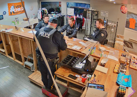 In the shop, the officers arrested MRA member Dustin Whitman and told him he was being arrested “for a fingerprinting” connected to earlier provincial charges. When Whitman asked to see a warrant or paperwork, none was provided.